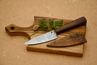 0 €320 plastni damast rezilo150 mm debelina 3 mm,nožnica usnje kače ročno šivana. Ročaj kost ribe mečarice. Dodaj v košarico -